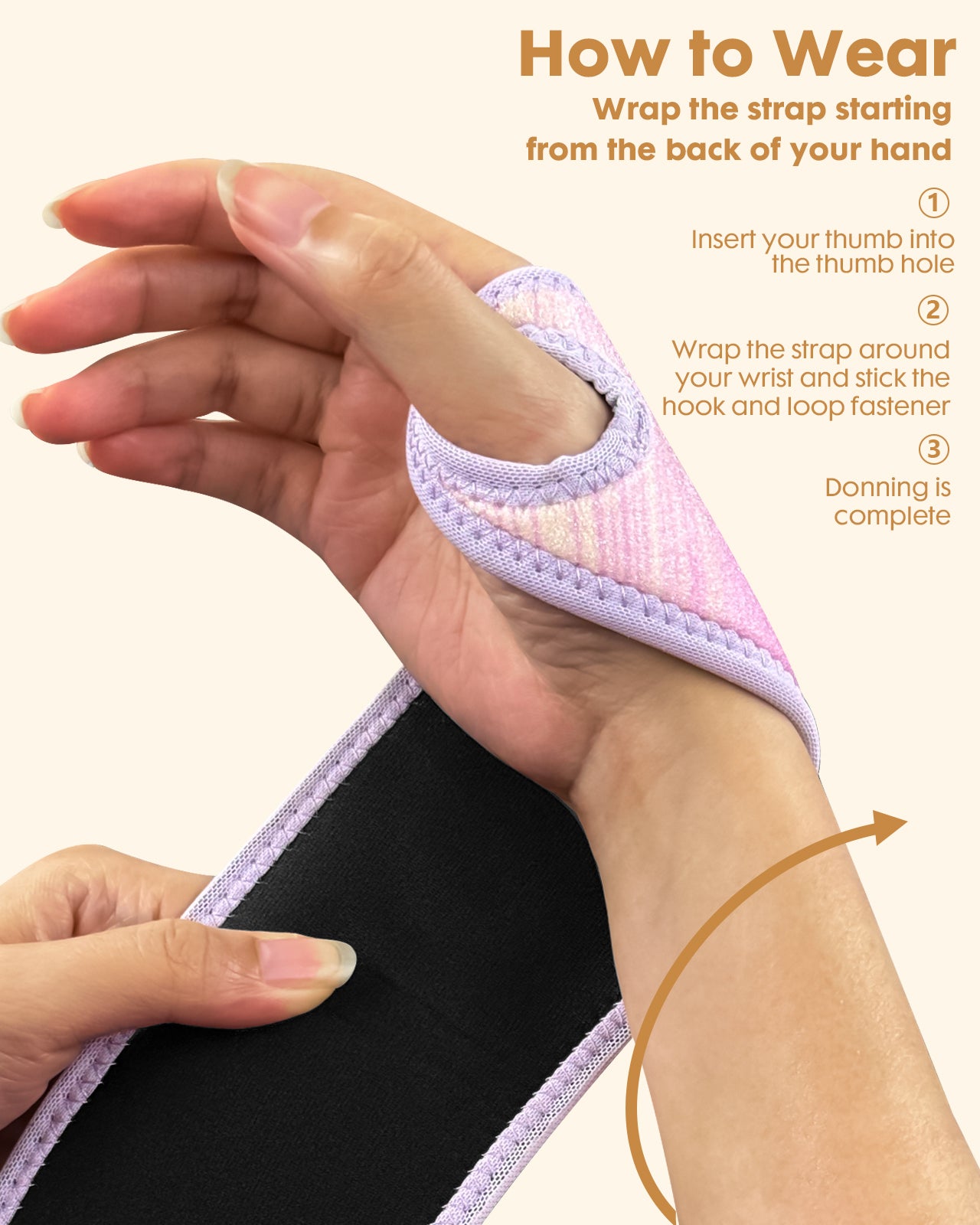 - Easy-to-Wear Design: Our wrist brace is designed for both left and right hands, making it versatile and easy to use. Simply slip your thumb through the hole and wrap it counterclockwise from the back of your hand to your palm for a secure fit. No need to worry about complicated adjustments