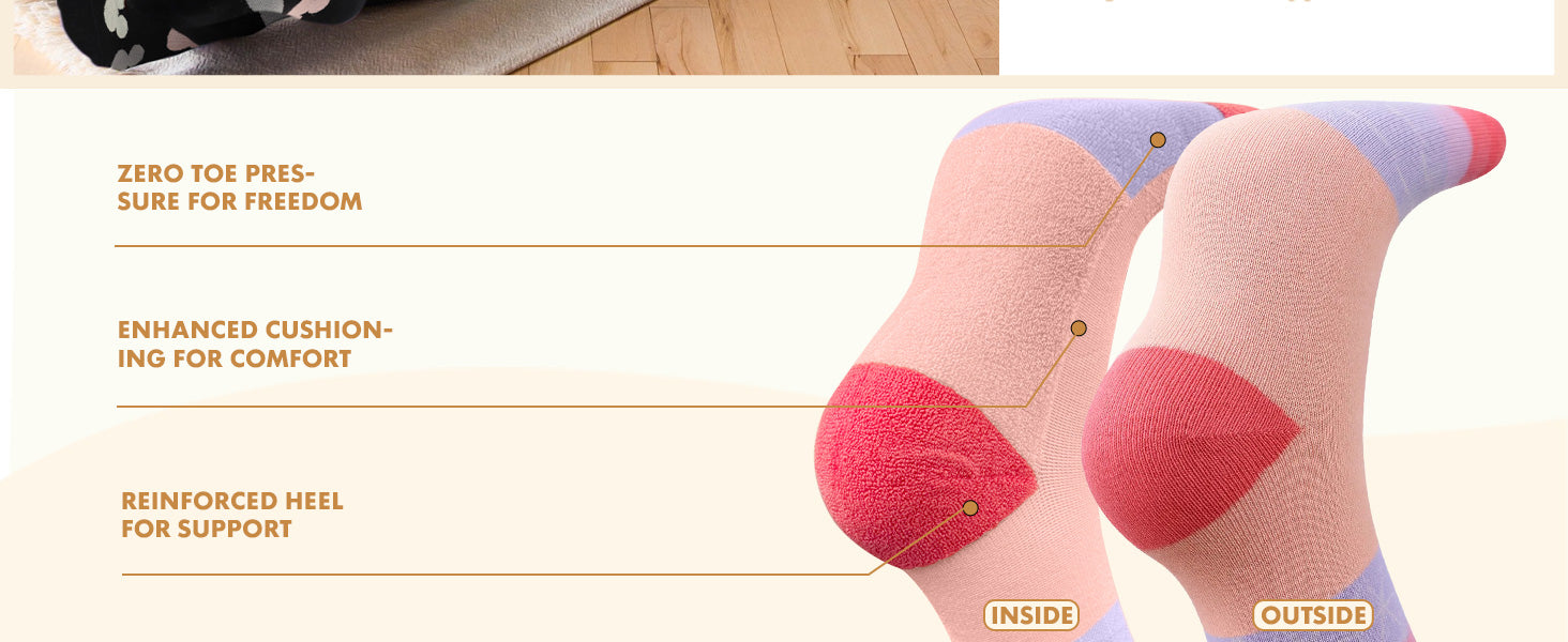 - Soft & Breathable Cotton: Up to 80% cotton with Core Spun technology for ultra-soft, elastic, and durable comfort. Cushioned soles make every step feel like walking on clouds.